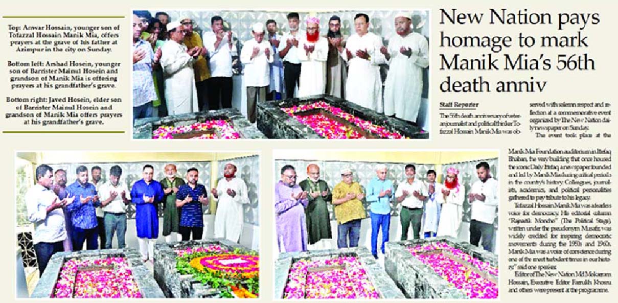 Staff Reporter : The 56th death anniversary of veteran journalist and political thinker Tofazzal Hossain Manik Mia was observed with solemn respect and reflection at...