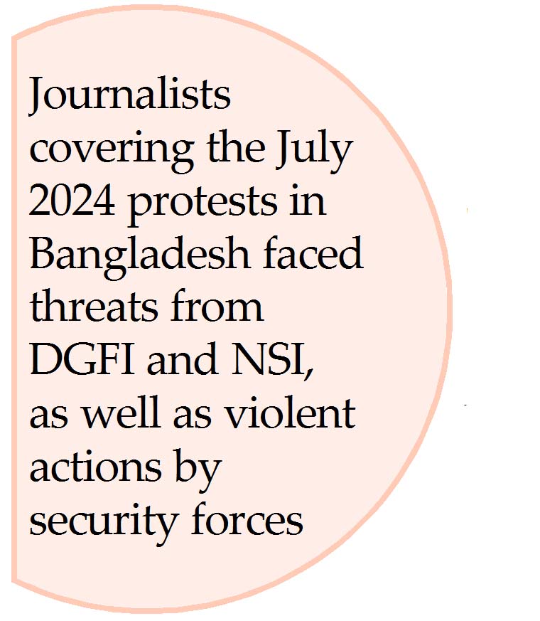 Staff Reporter : Journalists covering the July 2024 student-led protests in Bangladesh were subjected to severe threats, violence, and censorship by intelligence agencies and security...