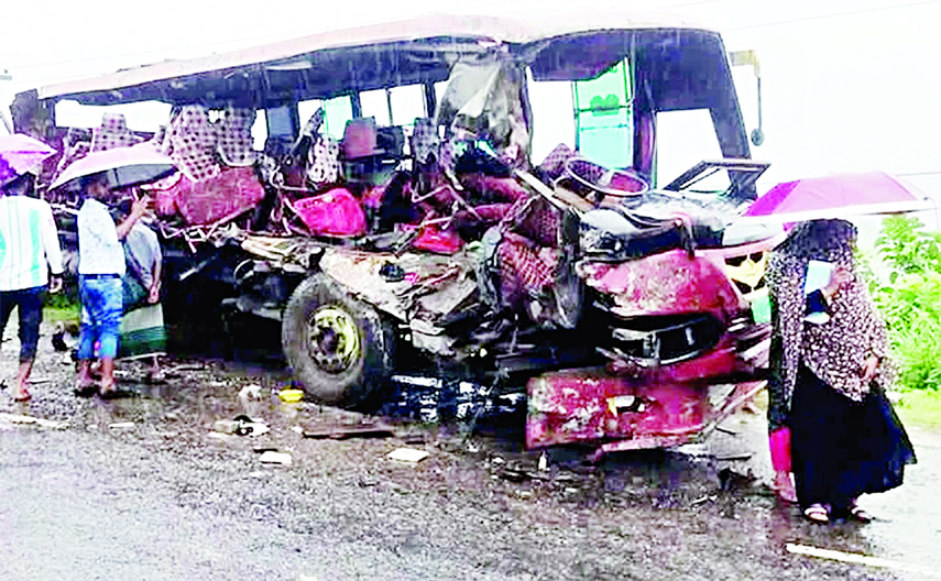 Manikganj Correspondent : Four people were killed and 20 injured in a head-on collision between a minibus carrying garment workers and a truck loaded with...