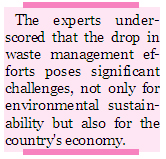 Staff Reporter : Experts emphasise the urgent need for increased investment and infrastructural development in waste management, given the concerning decline in plastic recycling rates...