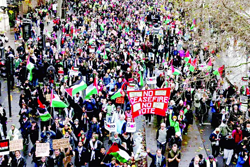 News Desk : Thousands of people rallied for a large march in the heart of London to demand an immediate halt to the conflict in...