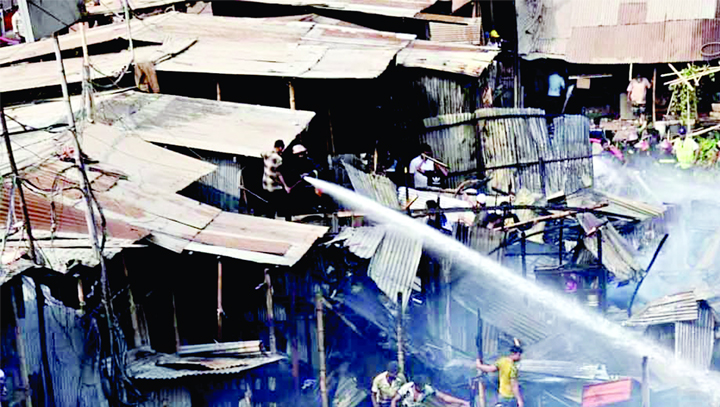 Staff Reporter : A massive fire that broke out at Jhilpar slum in Mirpur-12 in the capital has been brought under control after an hour....