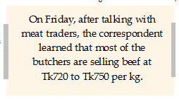 Staff Reporter : The price of beef has surged by up to Tk50 per kg within a month, preceding Shab-e-Barat and Ramadan, purportedly due to...