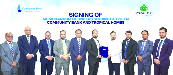 Business Desk : Community Bank Bangladesh PLC and Tropical Homes Limited have signed a Memorandum of Understanding (MoU) to strengthen mutual cooperation and offer enhanced...
