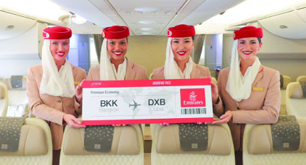Business Desk : Emirates has unveiled its highly acclaimed Premium Economy Cabin on flights EK376/377 between Dubai and Bangkok, operated by its newly retrofitted A380...