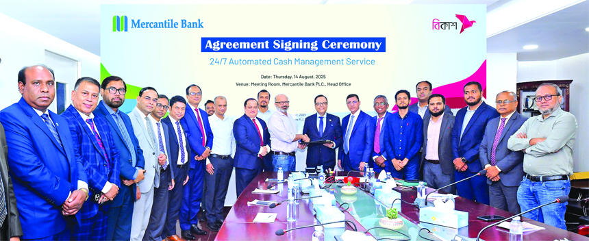 Business Desk : Mercantile Bank PLC and bKash Limited signed an agreement for 24/7 automated cash management services on Thursday. The agreement signing ceremony held...