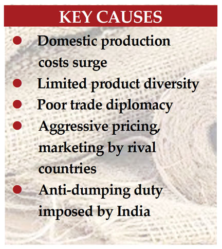 Muhid Hasan : Merchandise exports of jute and jute goods have declined for the fifth consecutive years as earnings from jute dropped by 4.10 percent...