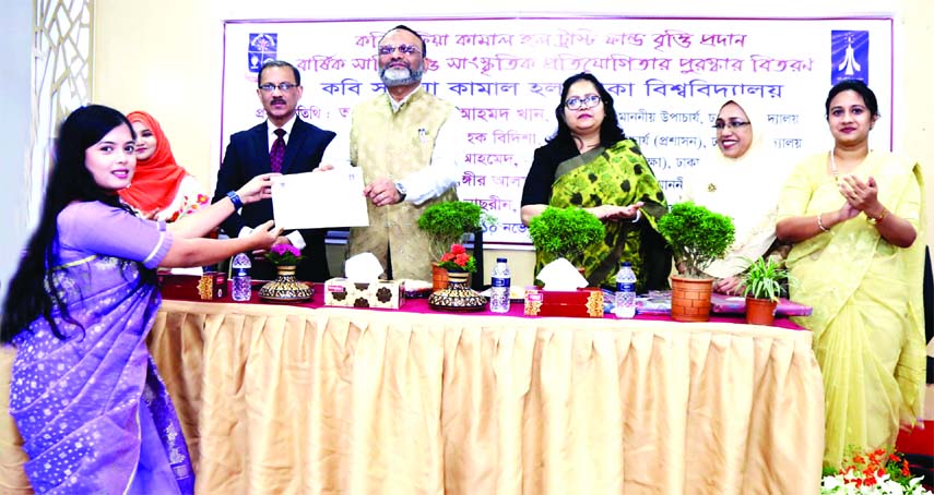 City Desk : The poet Sufia Kamal Hall Trust Fund scholarship (SKHTF) was awarded to 63 female students from various departments and years at the...