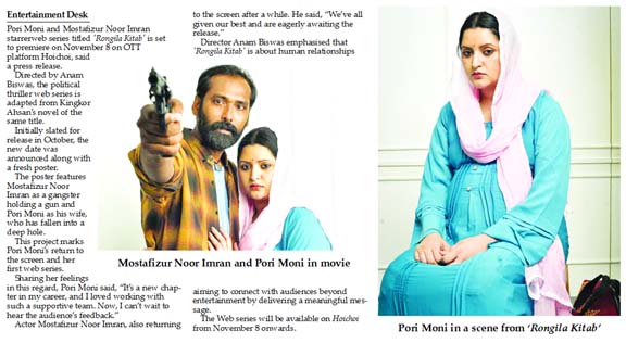 Entertainment Desk : Pori Moni and Mostafizur Noor Imran starrerweb series titled ‘Rongila Kitab’ is set to premiere on November 8 on OTT platform Hoichoi,...