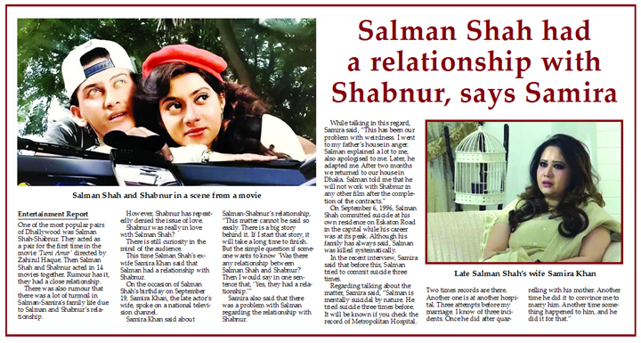 Entertainment Report : One of the most popular pairs of Dhallywood was Salman Shah-Shabnur. They acted as a pair for the first time in the...