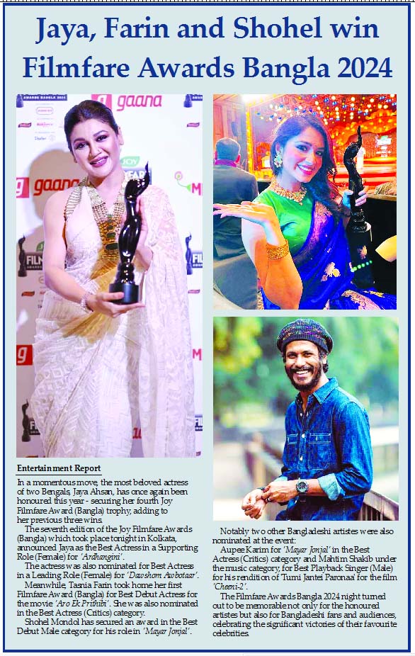 Entertainment Report : In a momentous move, the most beloved actress of two Bengals, Jaya Ahsan, has once again been honoured this year – securing...