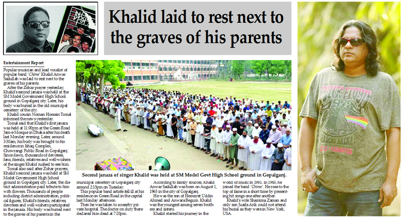 Entertainment Report : Popular musician and lead vocalist of popular band ‘Chime’ Khalid Anwar Saifullah was laid to rest next to the graves of his...