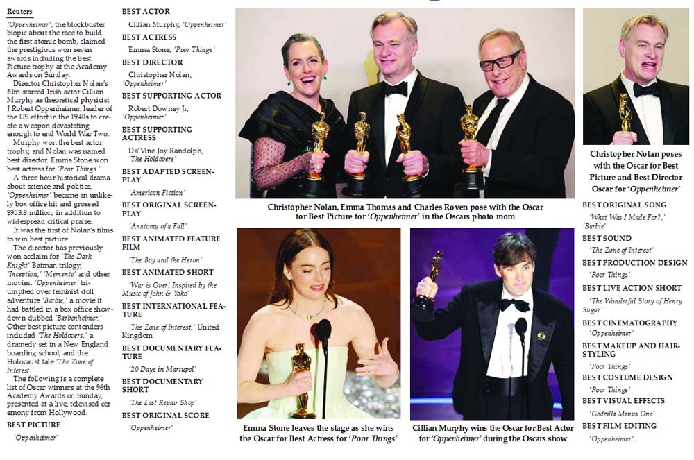 Reuters : ‘Oppenheimer’, the blockbuster biopic about the race to build the first atomic bomb, claimed the prestigious won seven awards including the Best Picture...