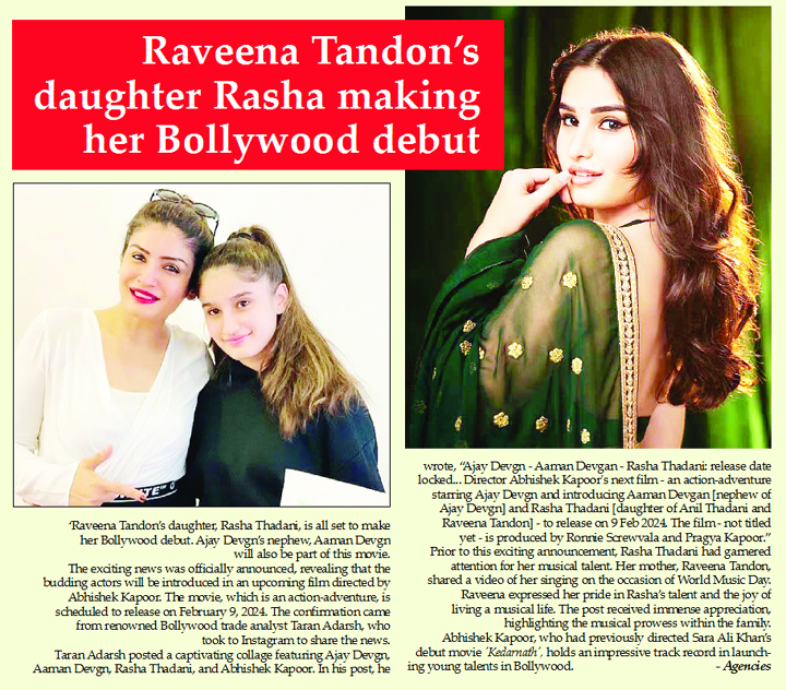 ‘Raveena Tandon’s daughter, Rasha Thadani, is all set to make her Bollywood debut. Ajay Devgn’s nephew, Aaman Devgn will also be part of this movie....