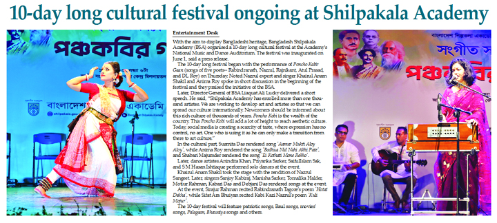 Entertainment Desk :With the aim to display Bangladeshi heritage, Bangladesh Shilpakala Academy (BSA) organised a 10-day long cultural festival at the Academy’s National Music and...