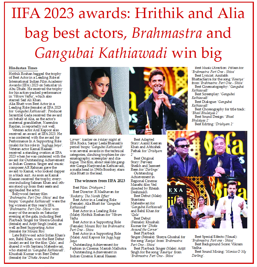 Hindustan Times :Hrithik Roshan bagged the trophy of Best Actor in a Leading Role at International Indian Film Academy Awards (IIFA) 2023 on Saturday in...
