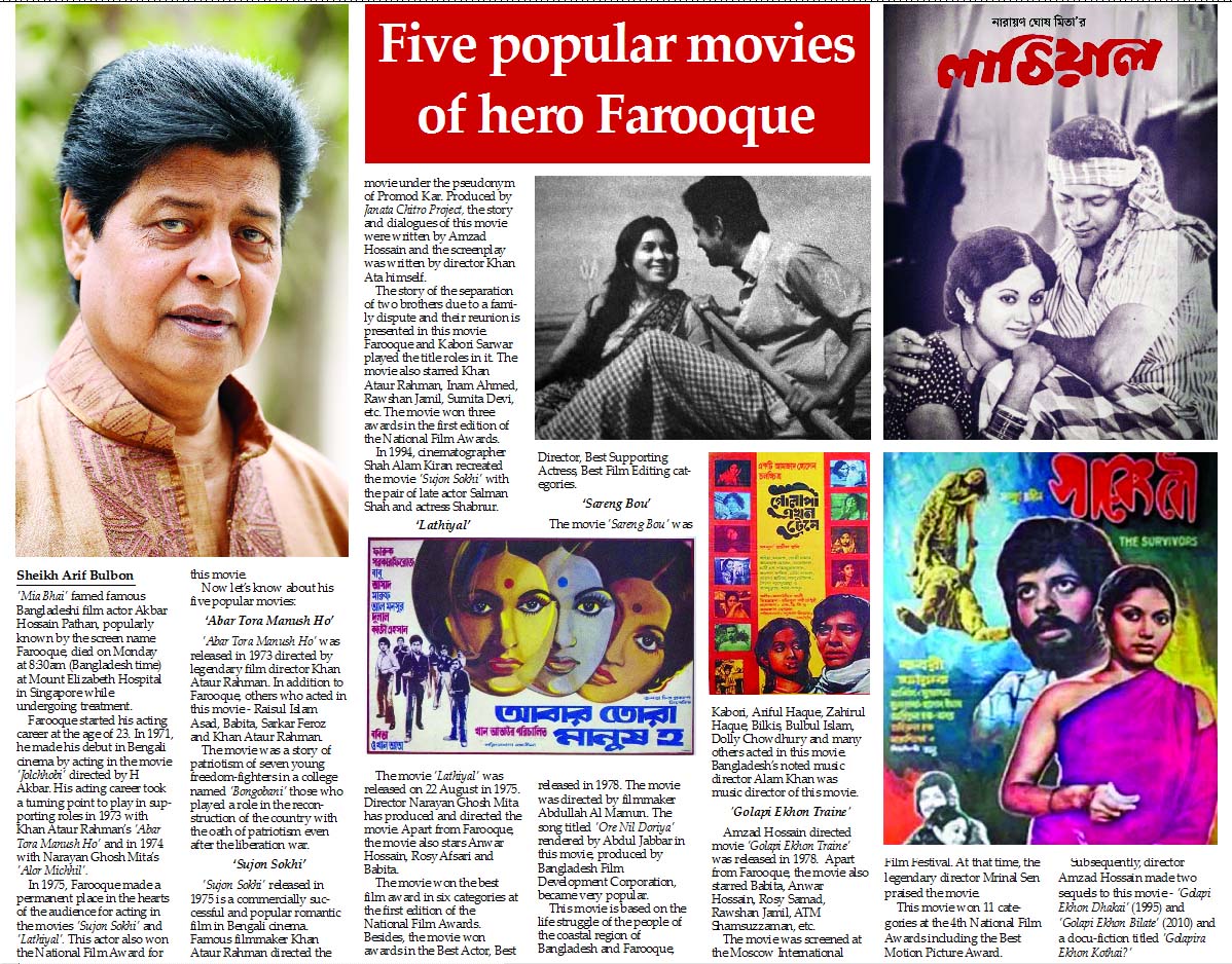 Sheikh Arif Bulbon :‘Mia Bhai’ famed famous Bangladeshi film actor Akbar Hossain Pathan, popularly known by the screen name Farooque, died on Monday at 8:30am...