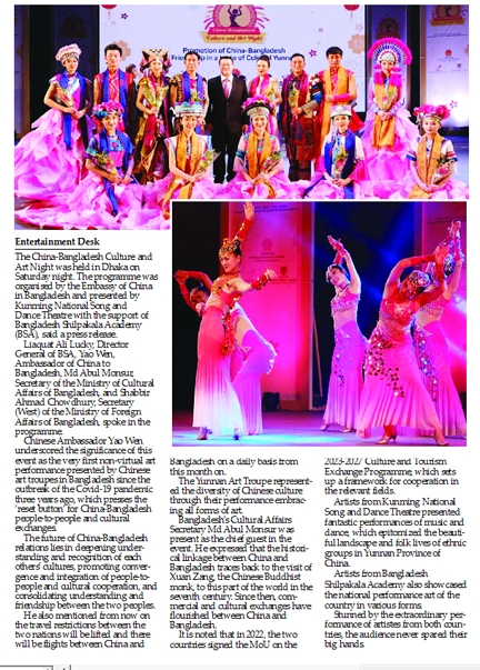 Entertainment Desk :The China-Bangladesh Culture and Art Night was held in Dhaka on Saturday night. The programme was organised by the Embassy of China in...