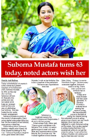 Sheikh Arif Bulbon :Today is the birthday of country’s noted actress and present Member of the Parliament (MP), Suborna Mustafa. In 1960, on this day she was born. Suborna will turn 63. Basically, the...