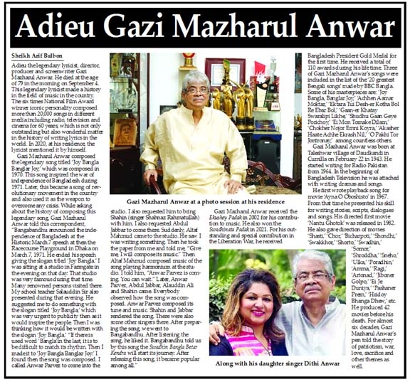 Sheikh Arif Bulbon :Adieu the legendary lyricist, director, producer and screenwriter Gazi Mazharul Anwar. He died at the age of 79 in the morning on...