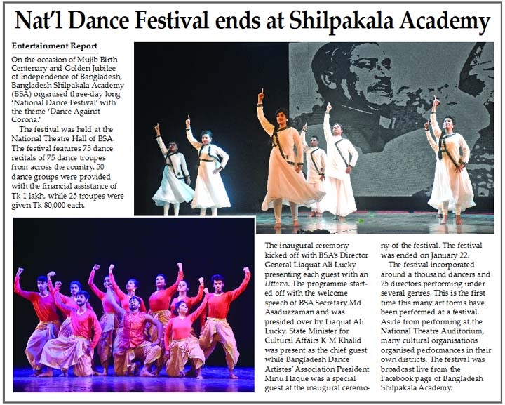 Entertainment Report :On the occasion of Mujib Birth Centenary and Golden Jubilee of Independence of Bangladesh, Bangladesh Shilpakala Academy (BSA) organised three-day long ‘National Dance...