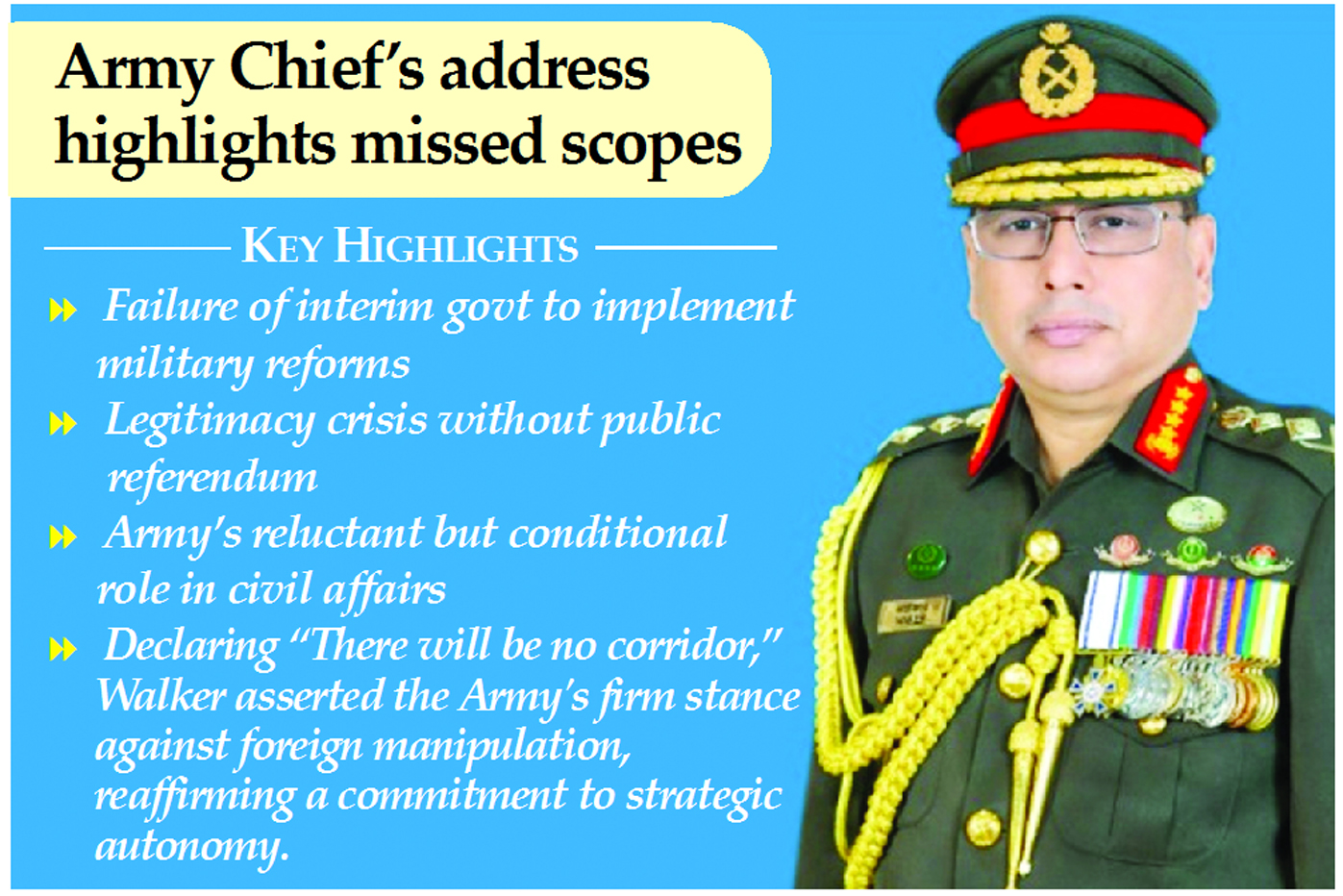 Special Report : In a candid and far-reaching address to officers of all ranks, Bangladesh’s Chief of Army Staff, General Walker, laid bare the growing...