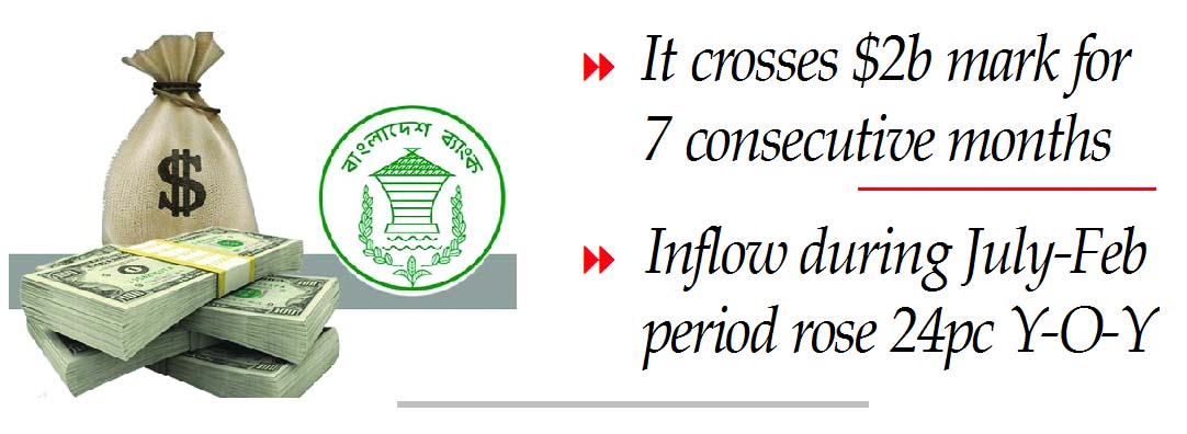 Staff Reporter : Bangladesh’s remittance earnings have surpassed the $2 billion mark for the seventh consecutive month, recording a remarkable 24 per cent year-on-year growth,...
