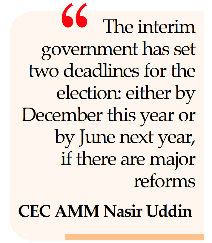 Staff Reporter : Chief Election Commissioner (CEC) AMM Nasir Uddin stated on Sunday that the Election Commission (EC) is moving forward based on two deadlines...