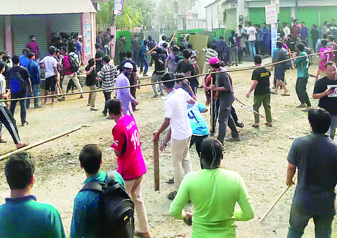 Staff Reporter : A violent clash broke out on Tuesday afternoon between Jatiyatabadi Chhatra Dal (JCD) and the Students Against Discrimination group at Khulna University...