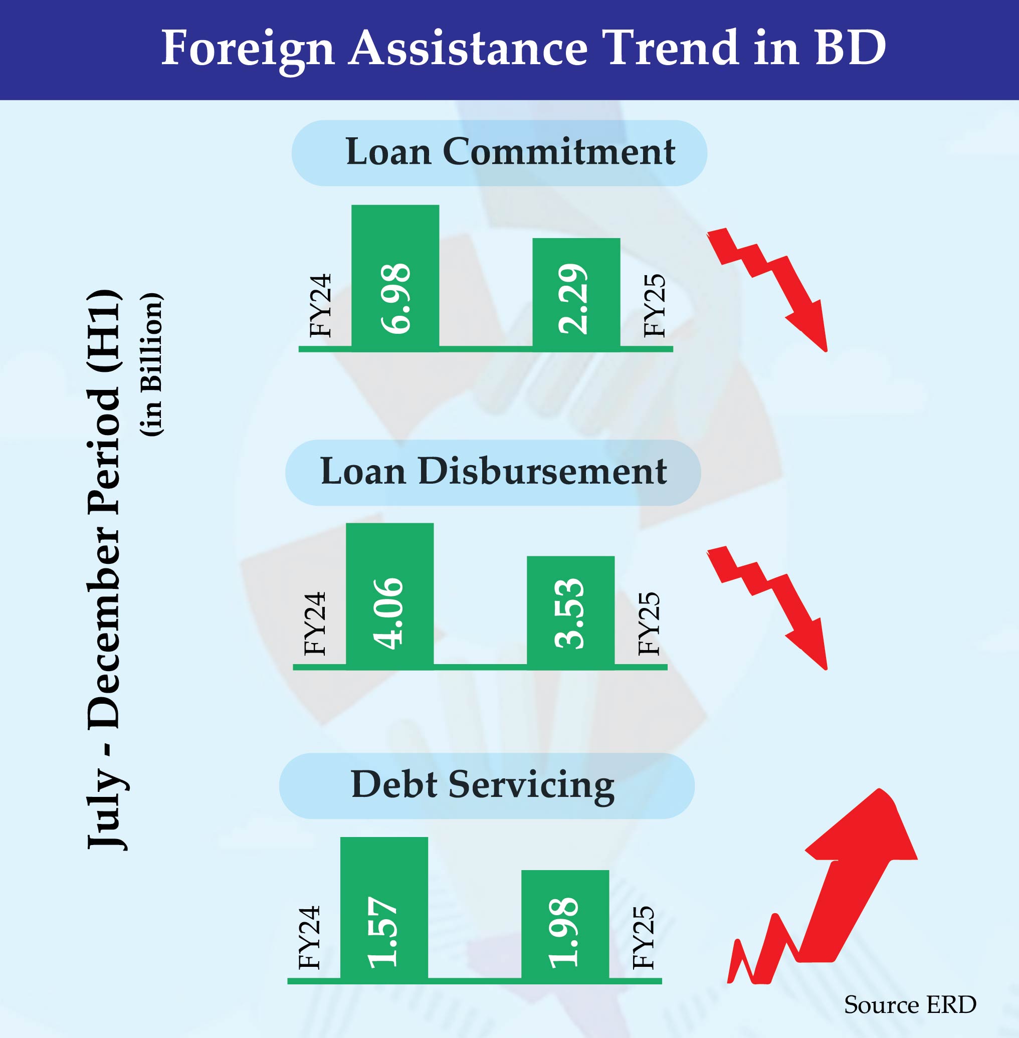 Staff Reporter : Bangladesh’s foreign debt servicing surged by 27 per cent in the first half (H1) of the current financial year 2024-25, driven by...