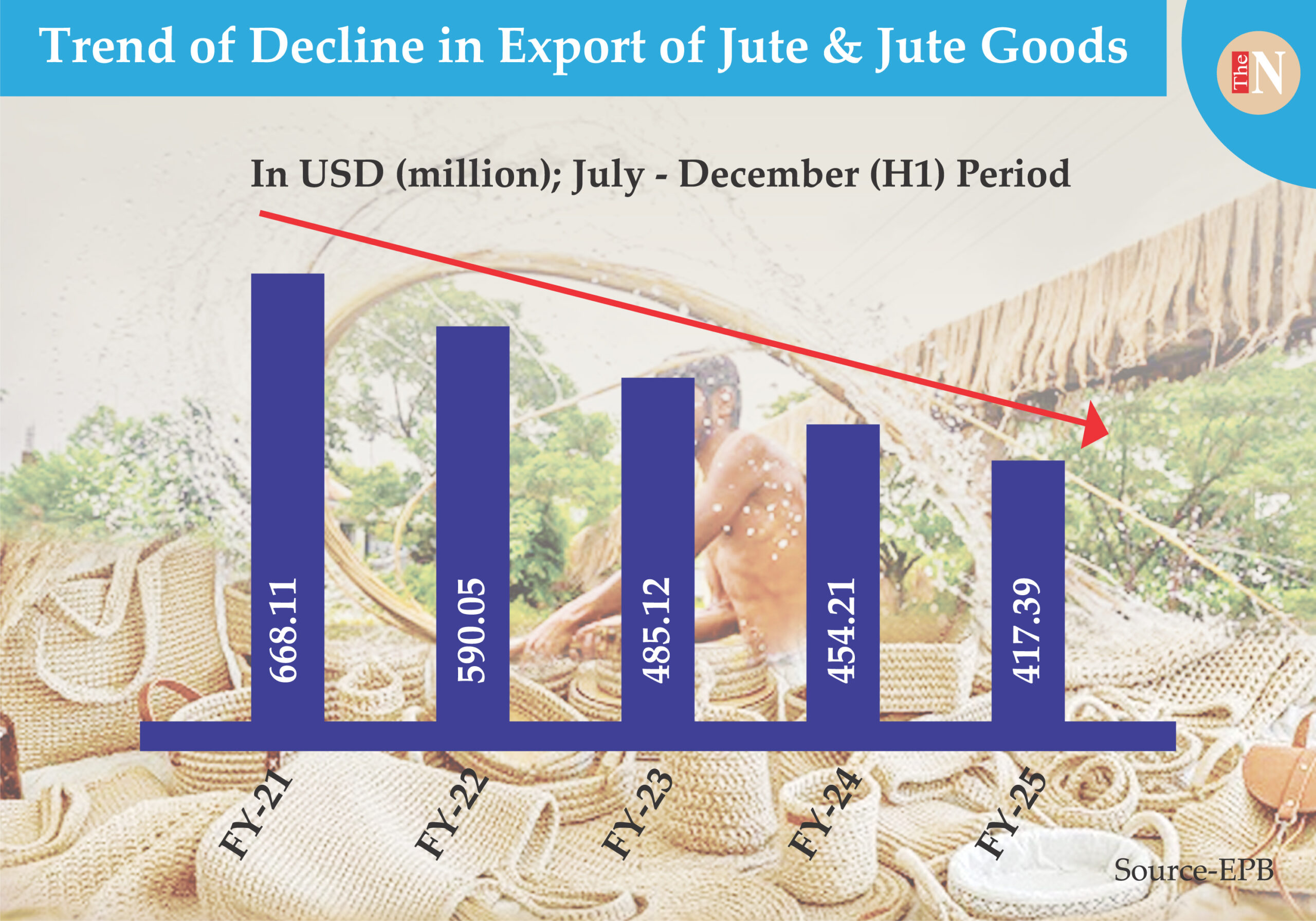 Muhid Hasan : Merchandise exports of jute and jute goods have declined for the fifth consecutive years in the first six months of the current...