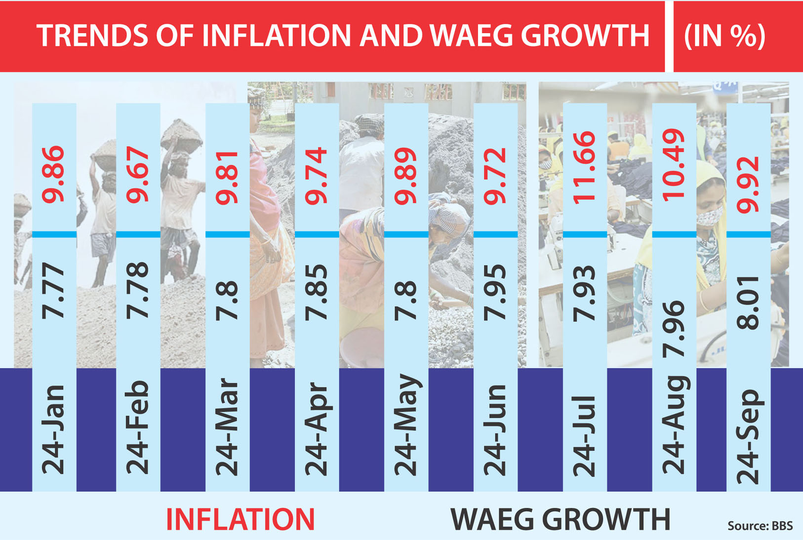 Muhid Hasan : The monthly wage growth for workers in Bangladesh has remained below the inflation rate for the past 32 months, beginning in February...