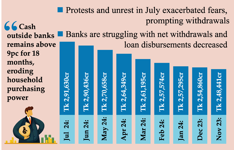 Staff Reporter : The amount of cash held outside commercial banks’ vaults surged for the ninth consecutive month from November 2023 to July 2024, driven...