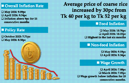 Staff Reporter : For the 15th consecutive month, Bangladesh continues to grapple with a stubbornly high inflation rate, which reached 9.89 percent in May, marking...