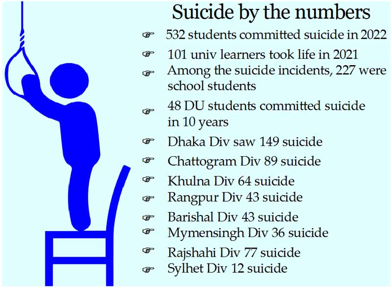 DU Correspondent : A total of 513 students of the country, including 98 belonging to different universities, have chosen the dark path of suicide in...