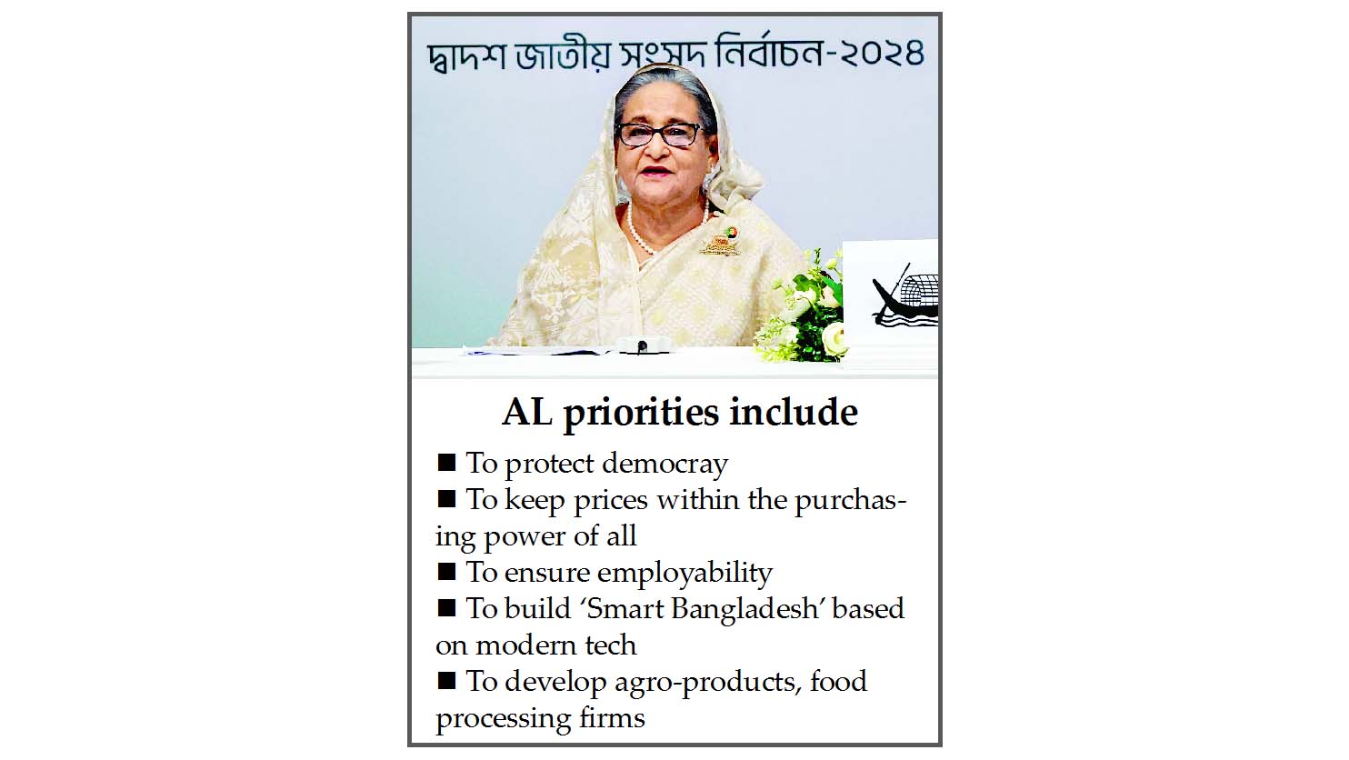 UNB : Awami League President Sheikh Hasina on Thursday made an impassioned appeal to the people to return her party to power for a straight...