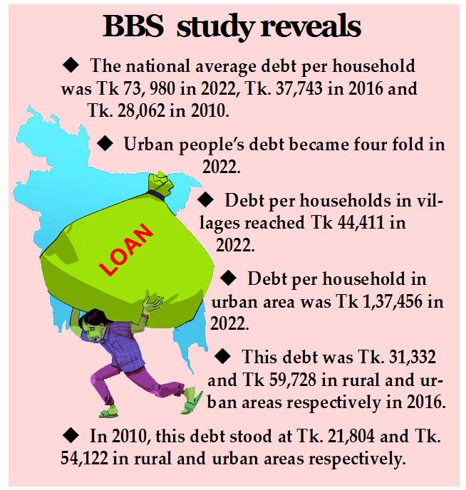 Staff Reporter : The average amount of debt in Bangladeshalmost doubled in last six years amounted to Tk 73, 980, according to the data from...