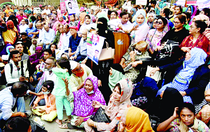 Staff Reporter :Family members of recently arrested BNP leaders and activists formed a human chain in front of the Jatiya Press Club in the capital...