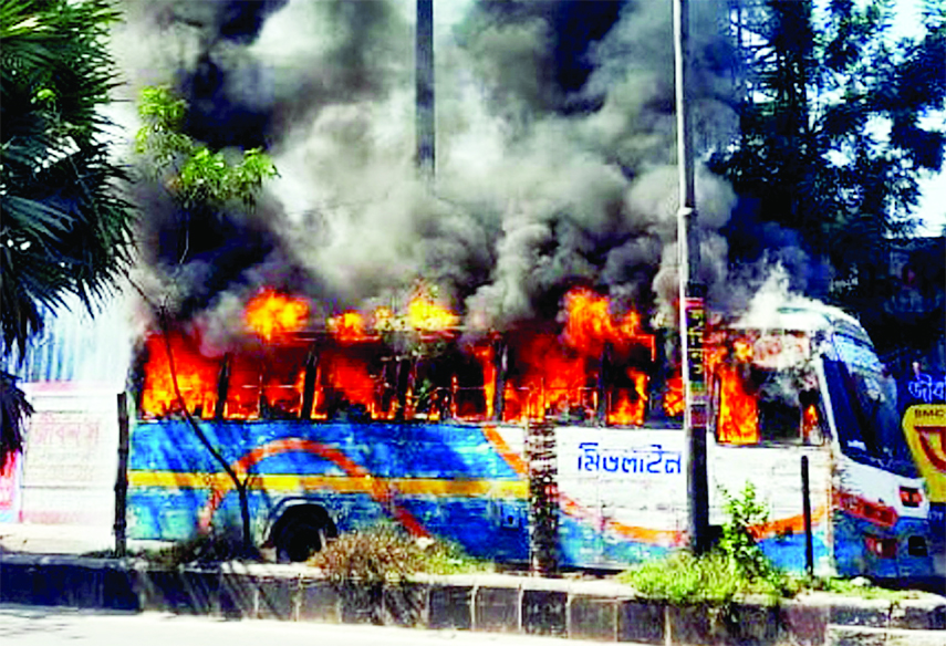 Staff Reporter :Three more buses were set on fire in the capital’s Mughda, Shyamoli and Bhatara area on Wednesday, the second day of the three-day...