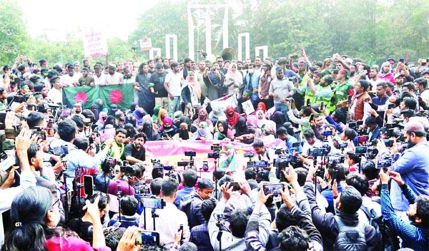 Staff Reporter : Inqilab Mancha on Monday took an “oath of martyrdom” at Shahbagh in the capital in memory of Sharif Osman bin Hadi, demanding...