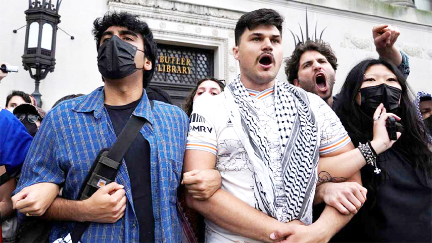 International Desk : Dozens of protesters stood on tables, beat drums and unfurled pro-Palestinian banners in the reading room of Columbia University’s main library on...