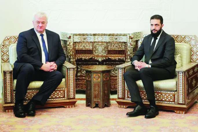 Al Jazeera : Syria’s de facto leader Ahmed al-Sharaa, also known as Abu Mohammed al-Golani looks on as he meets with senior Ukrainian delegation led...
