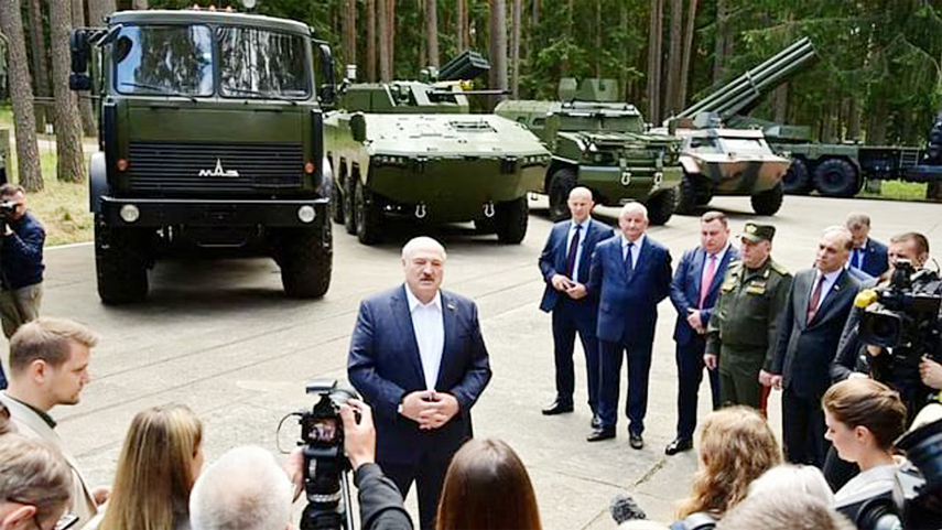 Reuters : ‘Some of the bombs are three times more powerful than those the US dropped on Hiroshima and Belarusian President Alexander Lukashenko speaks to journalists during his visit to a military-industrial complex facility...