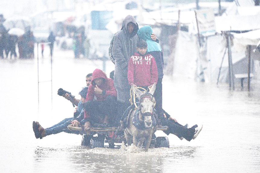 AP : Rains drenched Gaza’s tent camps and dropping temperatures chilled Palestinians huddling inside them Thursday as winter storm Byron descended on the war-battered territory,...