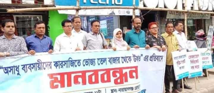 The Consumers Association of Bangladesh (CAB) organised a human chain in Narayanganj to protest the artificial shortage and overpricing of edible oil in the market....