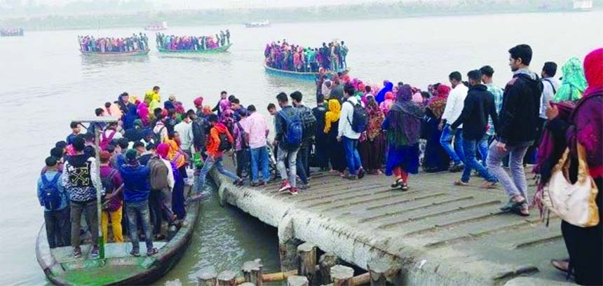 Bagerhat Correspondent : In spite of repeated assurance given by the government no bridge was constructed over the mighty river Panguchi flowing with strong current...