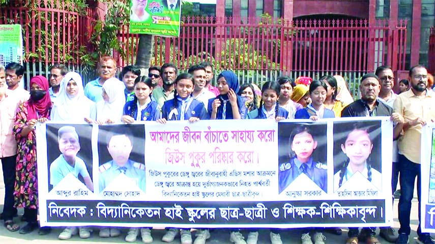 Staff Correspondent : Students from various educational institutions in Narayanganj formed a human chain holding photos of their classmates who died or were injured from...