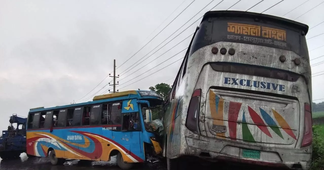 NN ONLINE: Two people were killed and 15 others injured in a head-on-collision between two buses on Dhaka-Mymensingh highway in Bhaluka upazila of Mymensingh...