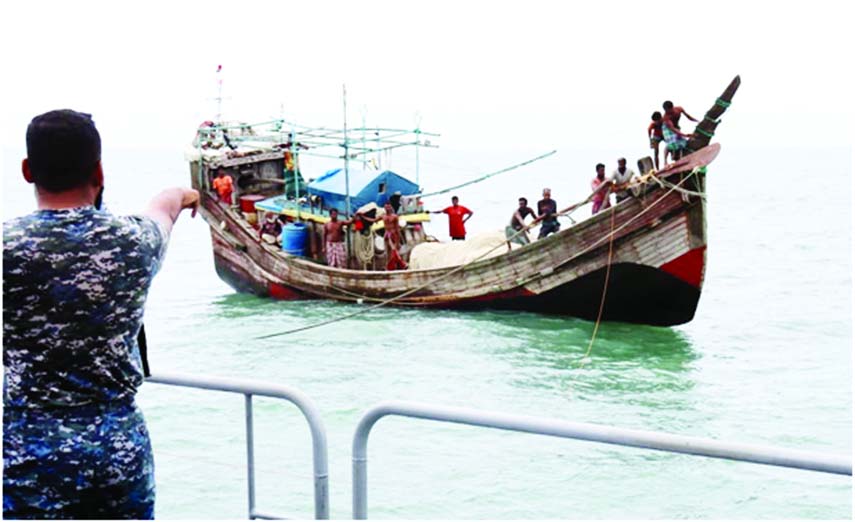 Bagerhat Correspondent : Bangladesh Navy’s warship ‘BanoujaBishkhali’ rescued a fishing trawler with 12 fishermen adrift after its engine failed while it was patrolling in the...