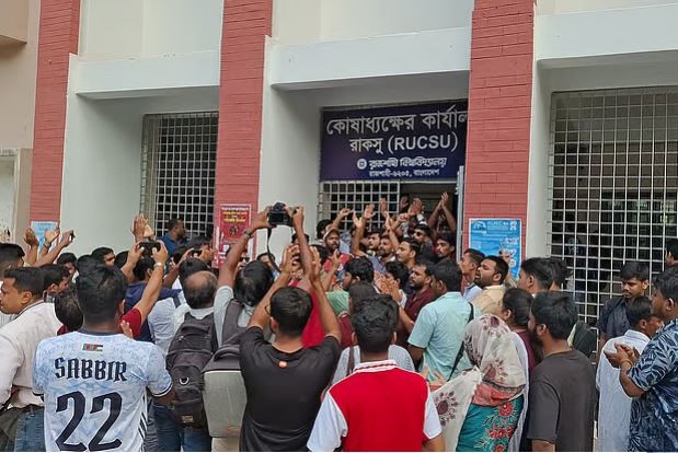 NN ONLINE: Leaders and activists from the Rajshahi University chapter of Chhatra Dal have locked and vandalized the treasurer’s office, demanding that first-year students...